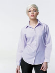 Soft collar. Rounded bottom hem. Fitted styling with bust darts and back darts . Open neck. Cotton rich, yarn dyed 'Fil-a-Fil' fabric. Long sleeve button cuff. Size 8, 10, 12, 14, 16, 18, 20, 22, 24